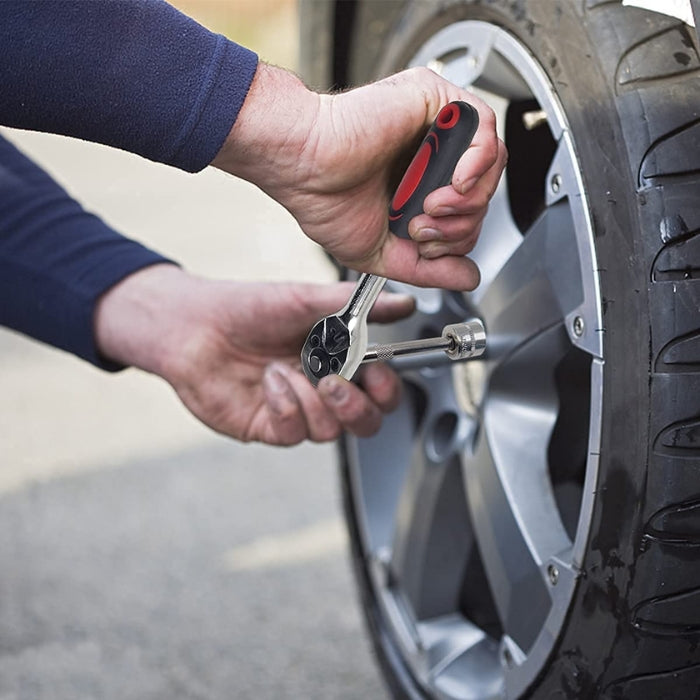 The reversible ratchet wrench with a quick-release switch allows smooth and efficient operation. Tightening and loosening bolts becomes effortless, reducing hand strain while providing maximum grip. Its ergonomic design makes it beginner-friendly while still catering to professional-level needs.