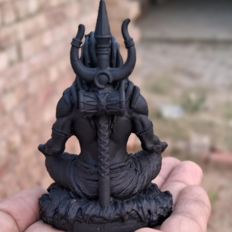 Crafted with intricate details like the third eye, rudraksha beads, and meditative mudra, this black resin statue beautifully combines spiritual symbolism with fine artistry. It instantly uplifts the energy of any space, offering both visual beauty and sacred meaning.